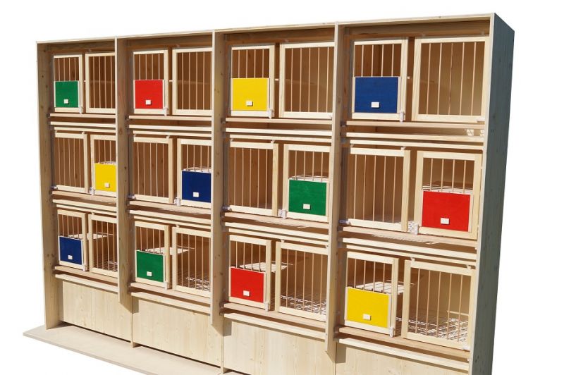 The specially constructed box provides optimum conditions for successful breeding of your pigeons. A breeding box contains additional floor for another nest bowl and two front doors, one of which is equipped with a vertically movable wooden blind.