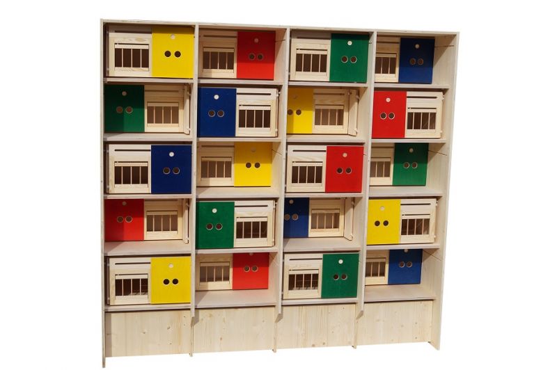 With this dual purpose box a fixed intermediate floor is installed. There is no wire grid and no manure drawer to pull out.This is the somewhat cheaper alternative to the conventional dual purpose boxes Art. no 302. The advantage is that the five boxes can be arranged one above the other.