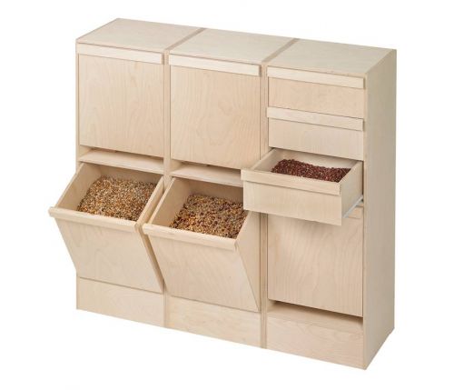 Containers are completely made of the Multiplex birch board. We intentionally do not use any wires on box fronts to prevent any dust reaching the feed. We have also taken care of suffi cient ventilation.